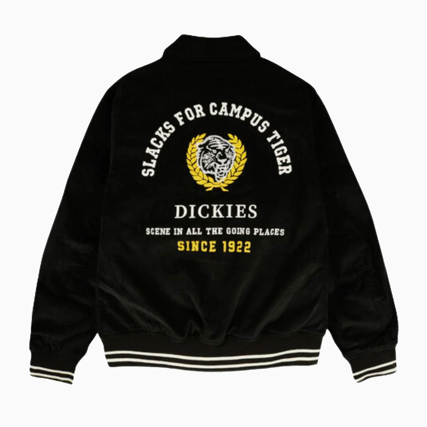 With its retro-inspired byron collar and bold “Slacks for Campus Tiger” graphic on the back, our men’s Westmoreland Jacket is a collegiate style built to go the distance. Perfect for relaxed weekends, this Varsity jacket features two welt pockets and Dickies script lettering on the back, blending easy-going style with everyday function.