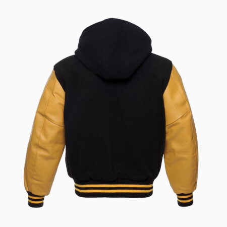 Black Yellow Varsity Letterman College Hoodie Jacket Wool With Real Leather