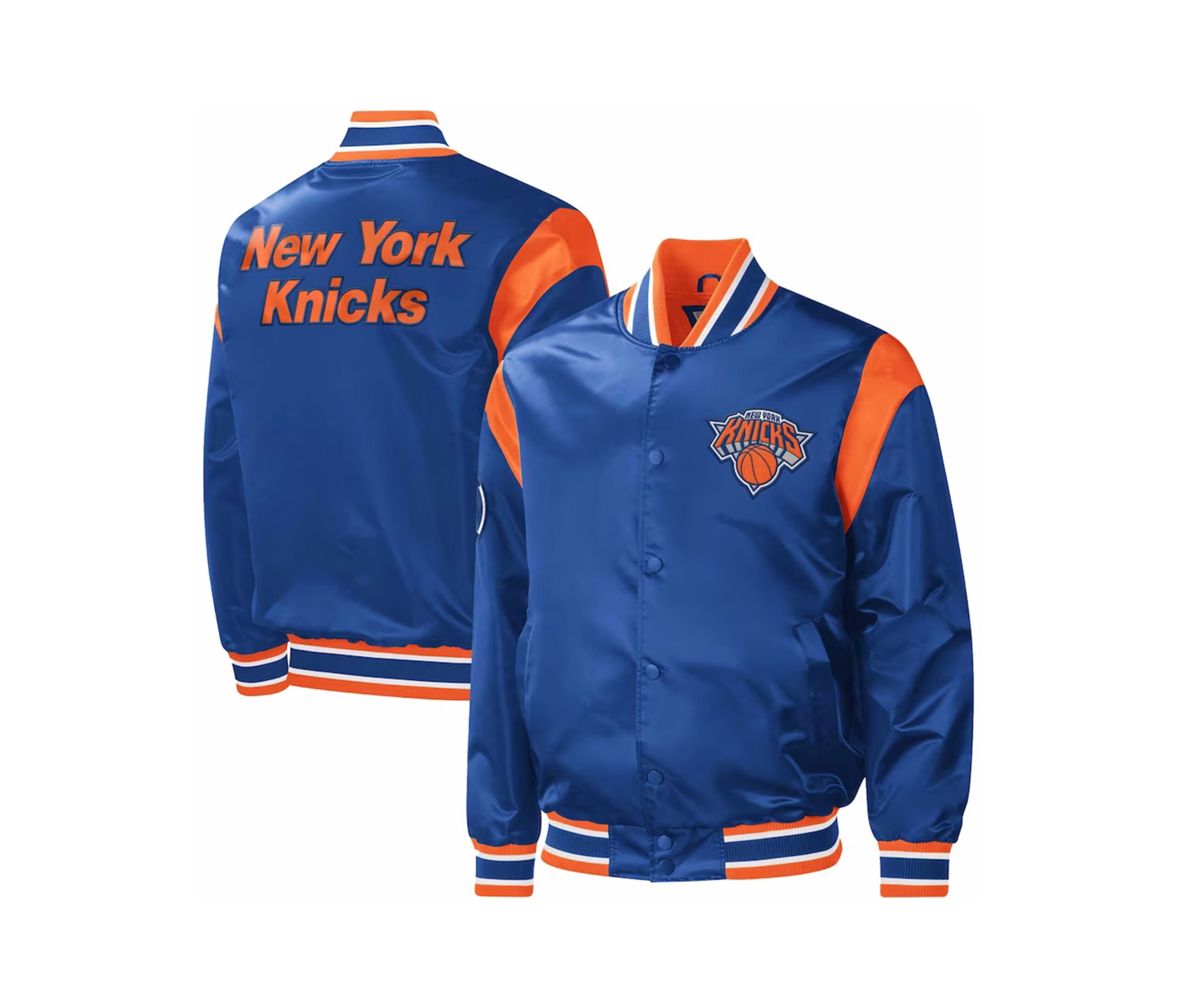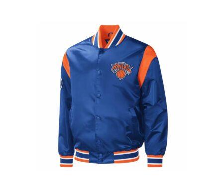 Light Blue Satin Varsity Jacket With Orange Arm Touch