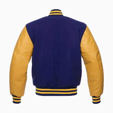 Mens Bright Royal Wool Body & Gold Leather Sleeves Varsity Jacket
