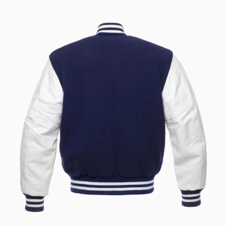 Mens Royal Blue Wool Body & White Leather Sleeves Varsity Jacket