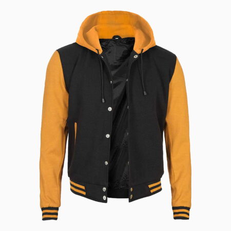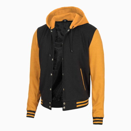 Elevate your style with our Men’s Yellow and Black Varsity Jacket with Hood, a versatile and fashion-forward outerwear piece tailored for men who value both style and practicality. Crafted from top-notch materials, this jacket ensures both warmth and longevity.