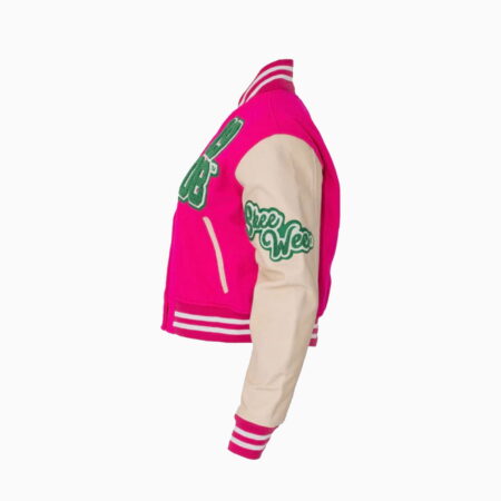 Pink Crop Leather Varsity Jacket
