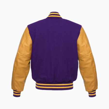 Purple Wool Body & Gold Leather Sleeves Varsity Jacket