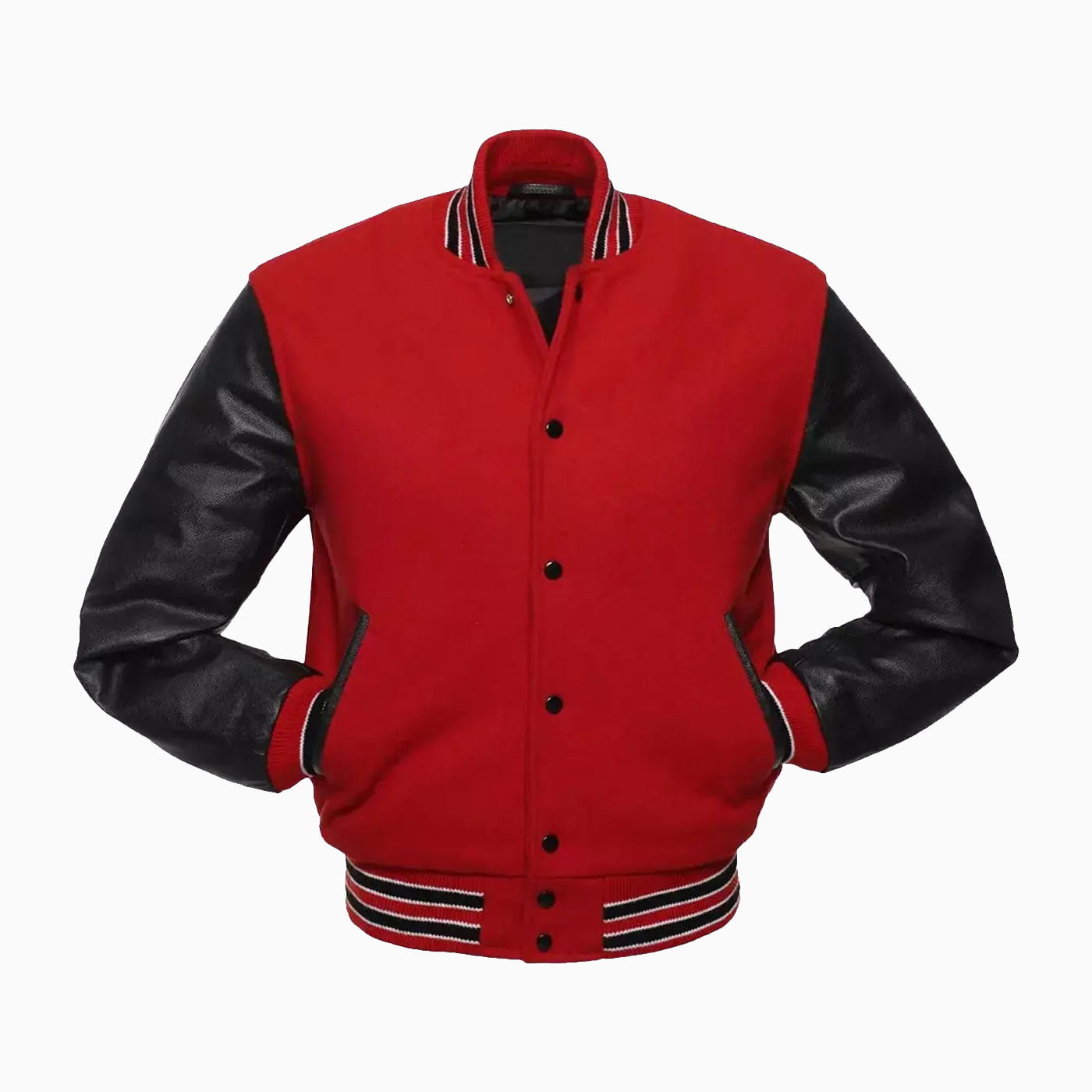Red Wool Body & Black Leather Sleeves Varsity Jacket