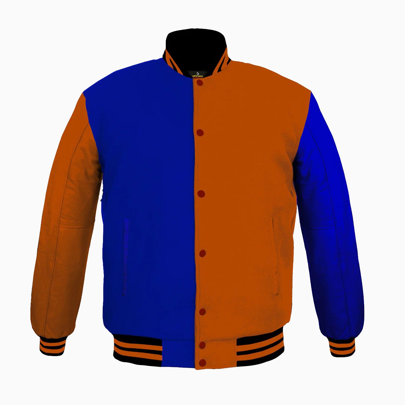 Varsity Jackets Genuine Leather Sleeve And Wool Body Blue Orange