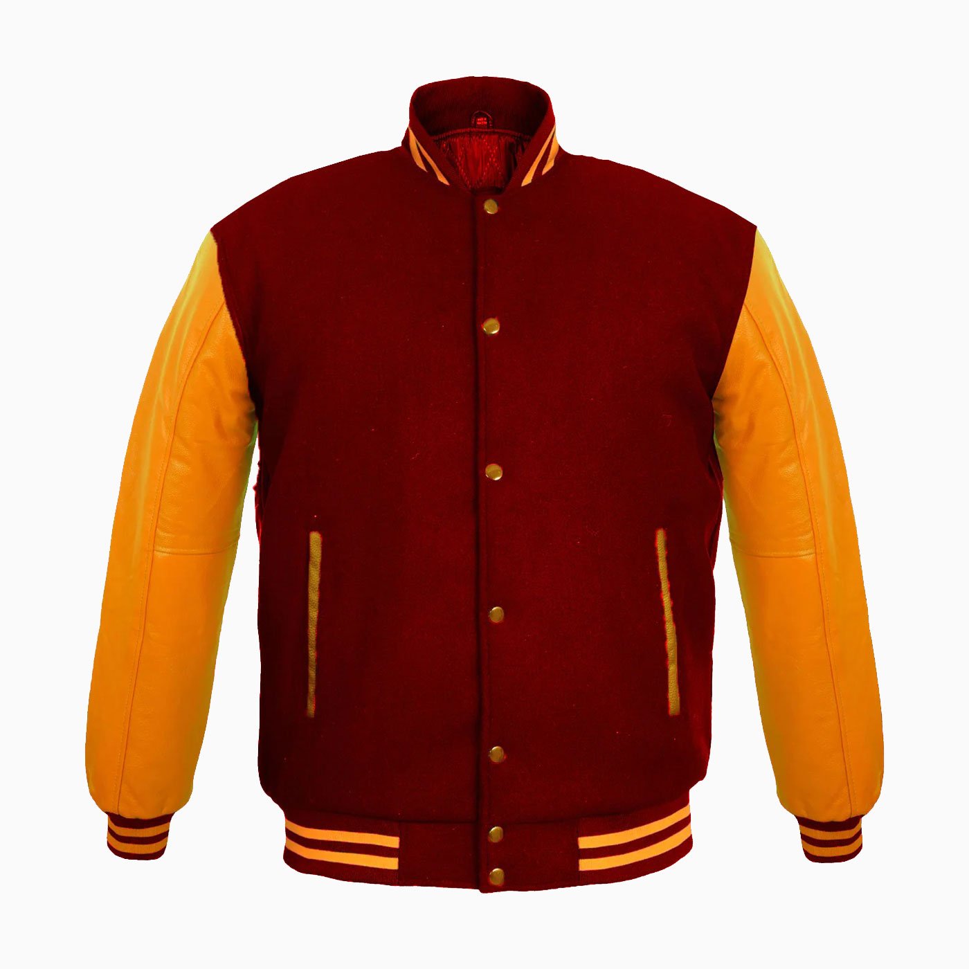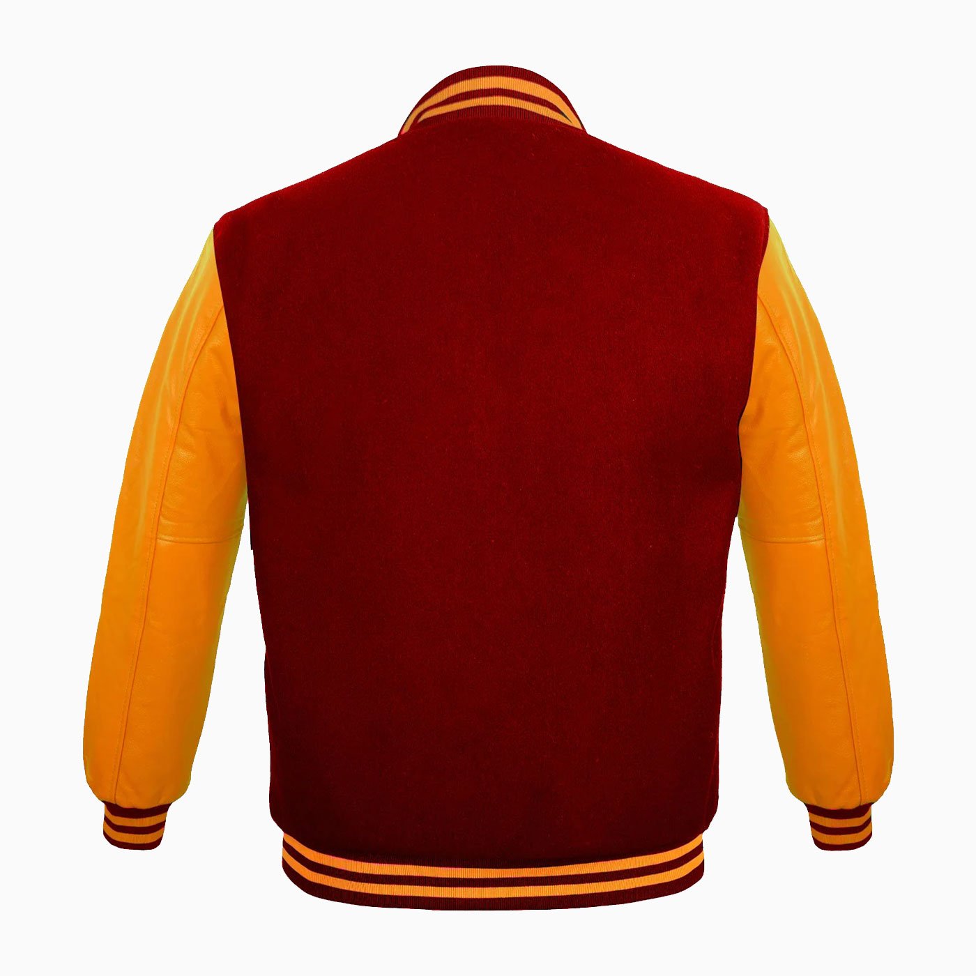 Varsity Jackets Genuine Leather Sleeve And Wool Body Red Yellow
