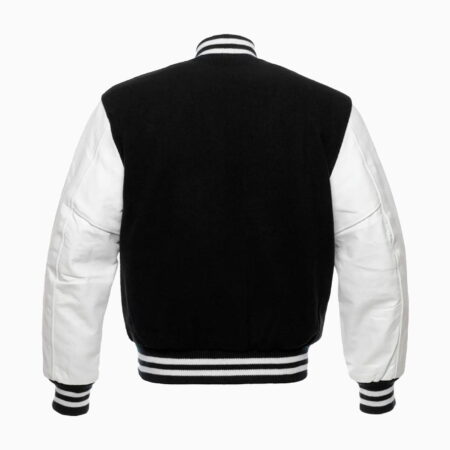 Womens Black Wool Body & White Leather Sleeves Varsity Jacket