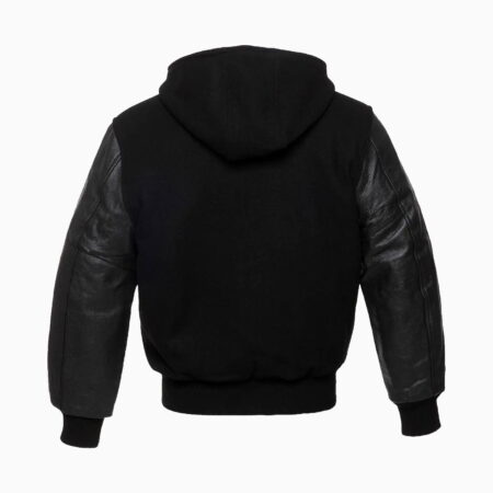 Womens Black Wool Hooded Varsity Jacket