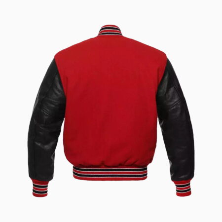 Womens Red Wool Body & Black Leather Sleeves Varsity Jacket